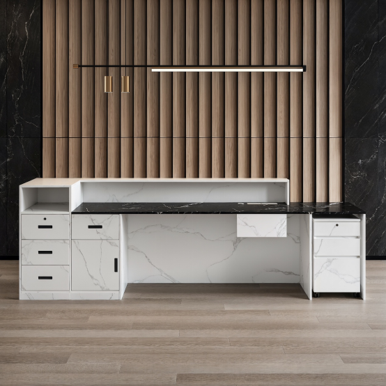 Modern Reception Desk with Counter Cable Management for Offices, Lobbies & Stores